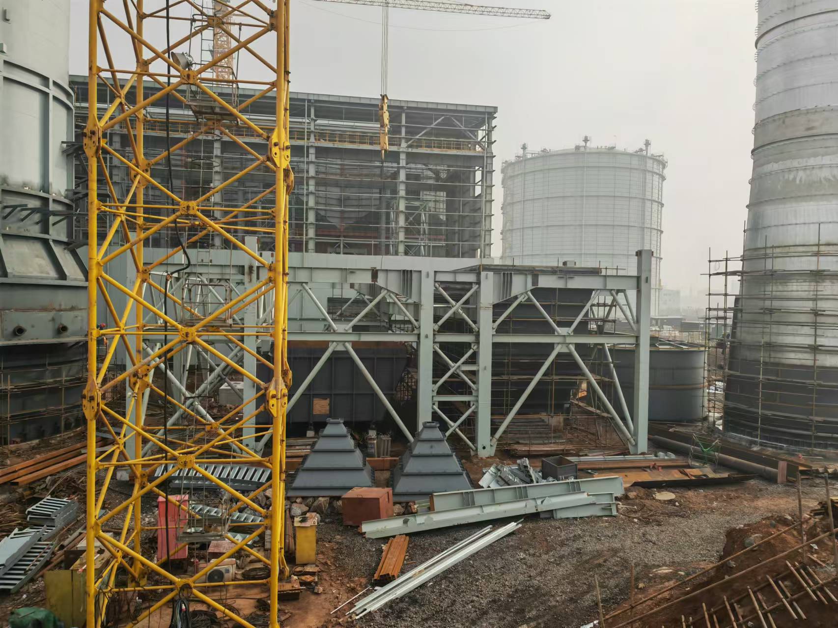 從燒結(jié)機(jī)主抽風(fēng)機(jī)出口膨脹節(jié)(含膨脹節(jié))至脫硝引風(fēng)機(jī) 出口鋼煙囪(含鋼煙囪)范圍內(nèi)脫硫系統(tǒng)、濕式電除塵器部分(只負(fù)責(zé)濕電殼體、 內(nèi)部支撐梁、內(nèi)外部防腐、管口人孔、沖洗水管道塔外部分等工作)、SCR脫硝系 統(tǒng)所有設(shè)備安裝、非標(biāo)件制作與安裝、鋼結(jié)構(gòu)制作與安裝、管道及管道支架制作與 安裝、保溫、防腐保溫腳手架搭拆、甲供設(shè)備補(bǔ)漆、電氣系統(tǒng)、熱控系統(tǒng)安裝、設(shè) 備單體調(diào)試、分部試運(yùn)、配合整套啟動(dòng)消缺等工作